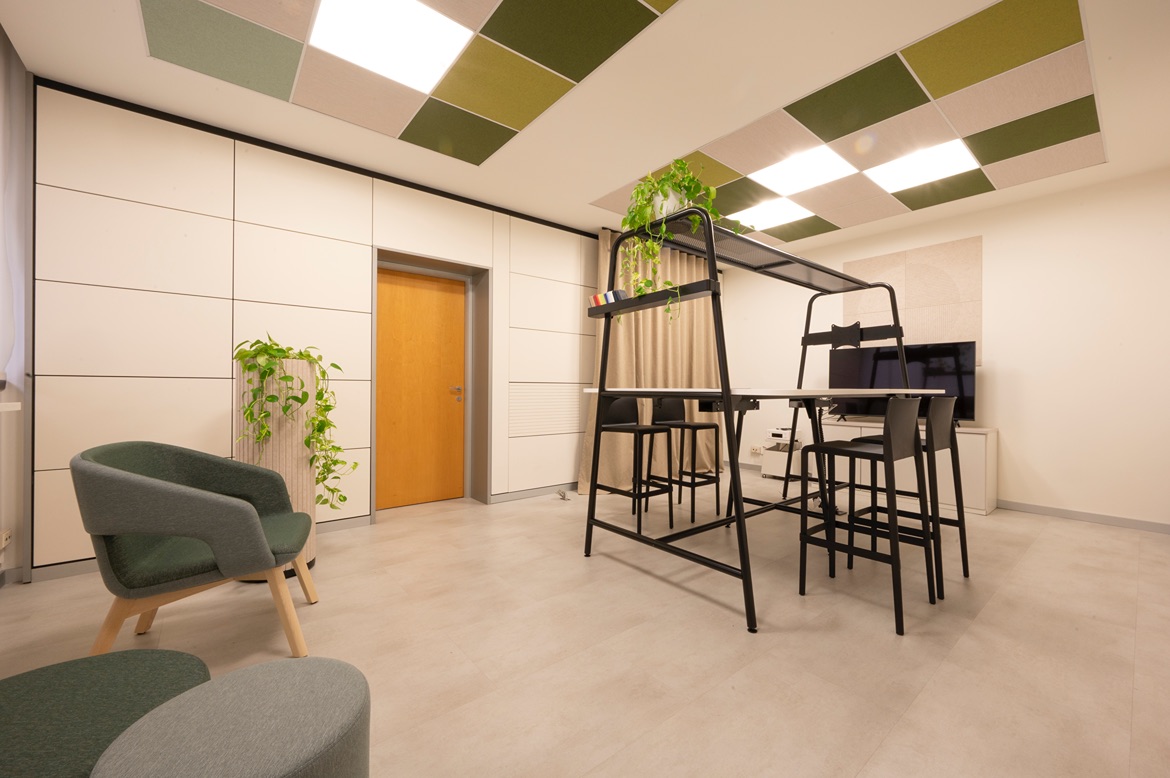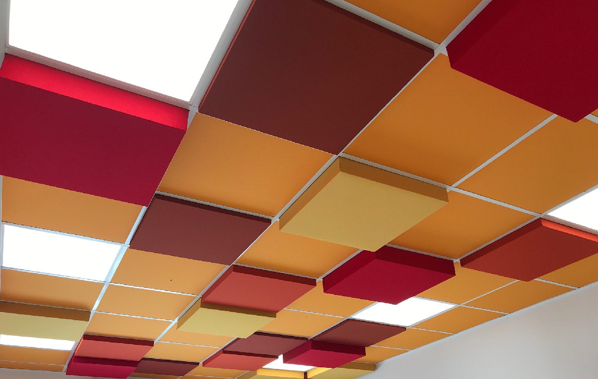 Pannelli fonoassorbenti in fibra di poliestere da inserire in controsoffitti esistenti.